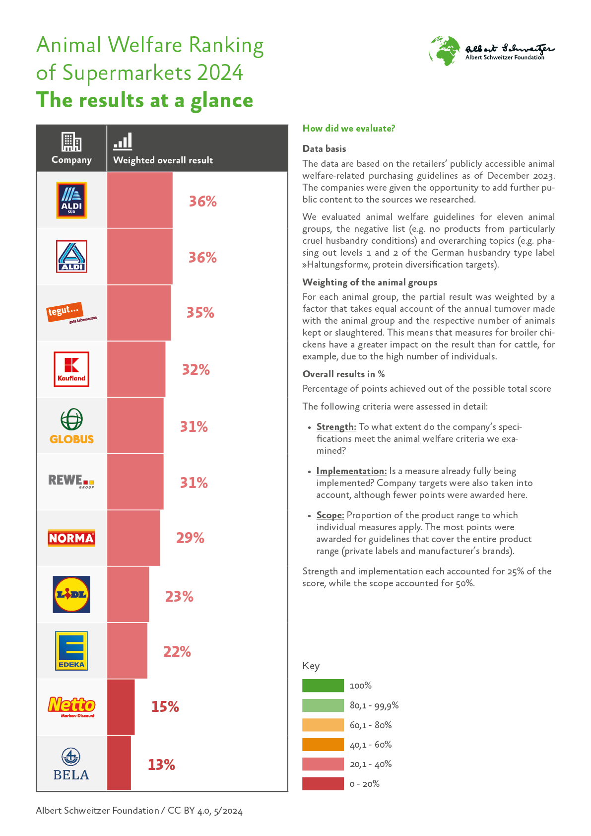 Detailed information on the methodology used can be found in the ranking [reader](https://albert-schweitzer-stiftung.de/aktuell/supermaerkte-tierschutz-ranking-2024#) (in German).