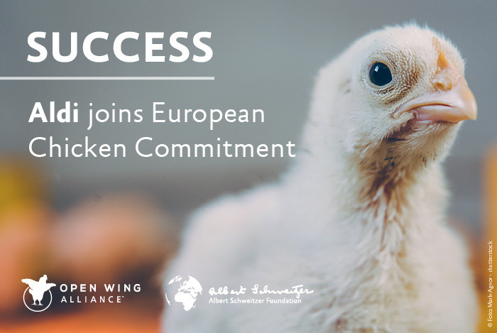 » We are pleased to accompany Aldi in this important step towards more animal welfare and congratulate the responsible persons on the decision « , says Mahi Klosterhalfen, president of Albert Schweitzer Foundation. » Since we already received positive signals from other food retailers, we count on the fact that soon further companies will follow. Together the retailers can move the yardstick on animal welfare. So far about 350 companies have joined the European Chicken Commitment in Europe and its equivalent in North America. Aldi is one of the largest and most important of them. «